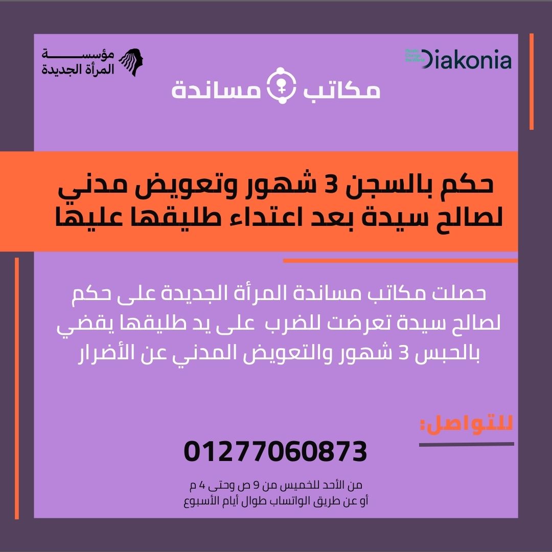 حكم بالحبس 3 شهور وتعويض مدني لسيدة بعد تعدى طليقها عليها بالضرب