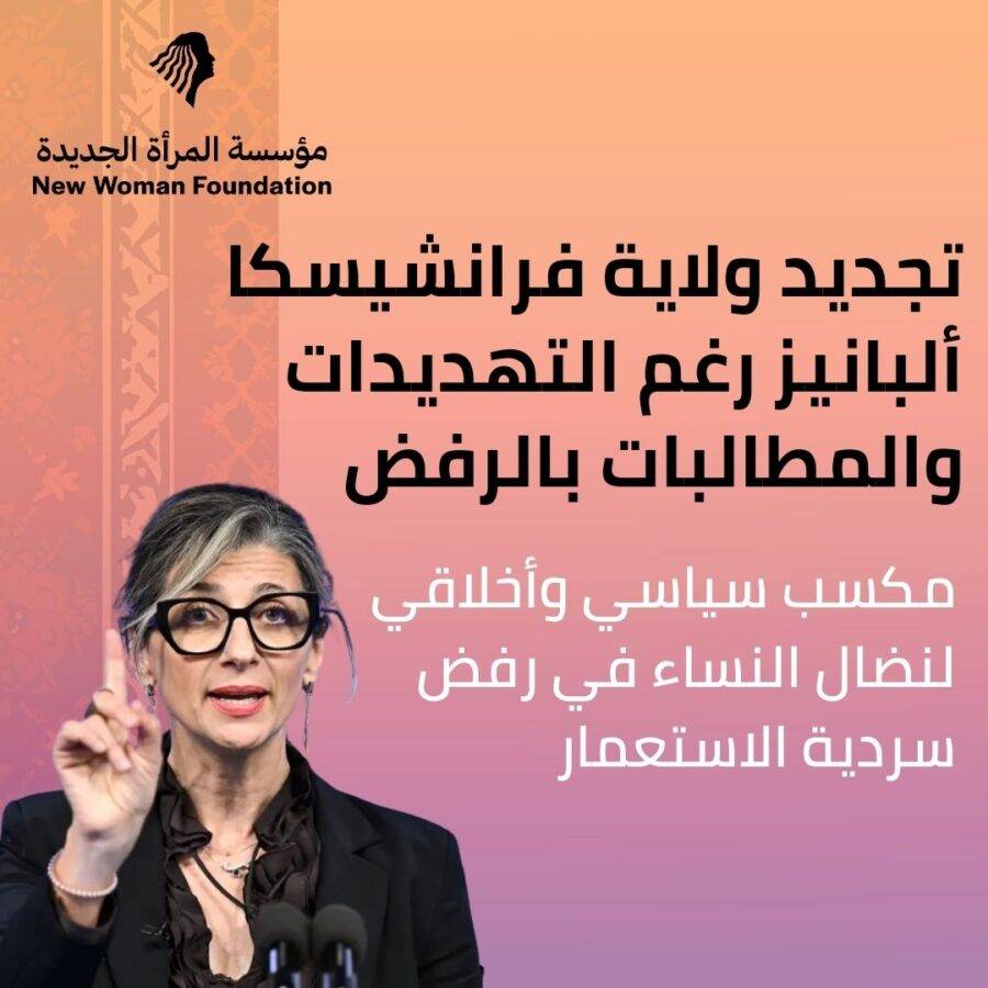 تجديد ولاية فرانشيسكا ألبانيز رغم التهديدات والمطالبات بالرفض مكسب سياسي وأخلاقي لنضال النساء في رفض سردية الاستعمار نرحب بتجديد ولاية فرانشيسكا ألبانيز بالأمس كمقررة خاصة للأمم […]